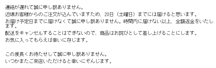 翌日、出品者からメールが。