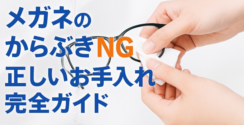 メガネは毎日使う大切なアイテム。だからこそ、正しいお手入れをするかどうかで寿命も快適さも大きく変わってきます。つい癖でやってしまいがちな「からぶき」は、実はレンズに傷をつけてしまうNG行為。水洗いを基本とし、汚れをしっかり落としてから柔らかい布やティッシュで拭き取るのが正しいケア方法です。