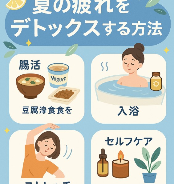 暑い日が続くと、だるさや疲れがなかなか取れなくて困っていませんか?実は夏は体の中に老廃物がたまりやすく、知らない間に不調の原因になっていることも。この記事では、今日から誰でもできる「夏の疲れをデトックスする方法」をたっぷりご紹介します。読んだ後すぐに取り入れられるアイデアばかりなので、ぜひ最後までチェックしてみてください!